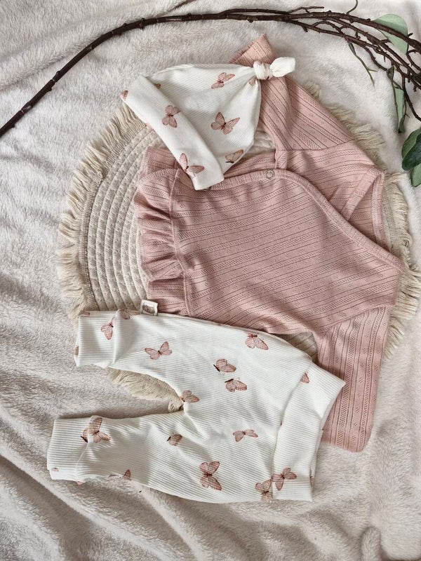 Lief setje, broekje met mutsje en wikkelshirtje